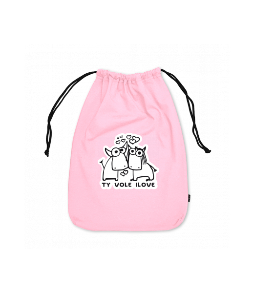 Large cotton pouch with design 1089 TY VOLE I LOVE in color BABY PINK