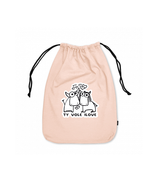 Large cotton pouch with design 1089 TY VOLE I LOVE in color CAPPUCINO