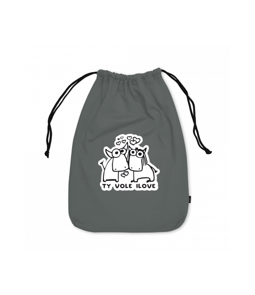 Large cotton pouch with design 1089 TY VOLE I LOVE in color DARK GRAY