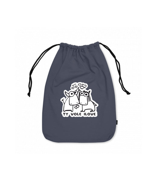 Large cotton pouch with design 1089 TY VOLE I LOVE in color GRAY INK