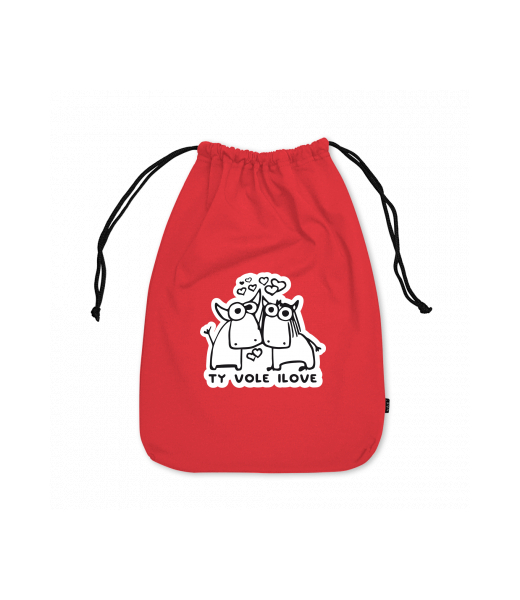 Large cotton pouch with design 1089 TY VOLE I LOVE in color RED