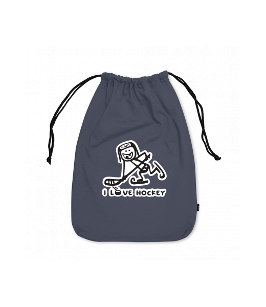 Large cotton pouch with design 1100 I LOVE HOCKEY in color GRAY INK