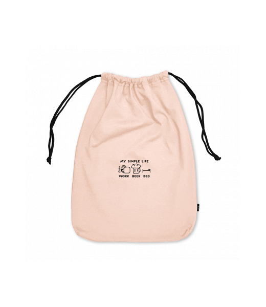 Large cotton pouch with design 1211 MY SIMPLE LIFE WORK BEER BED in color CAPPUCINO