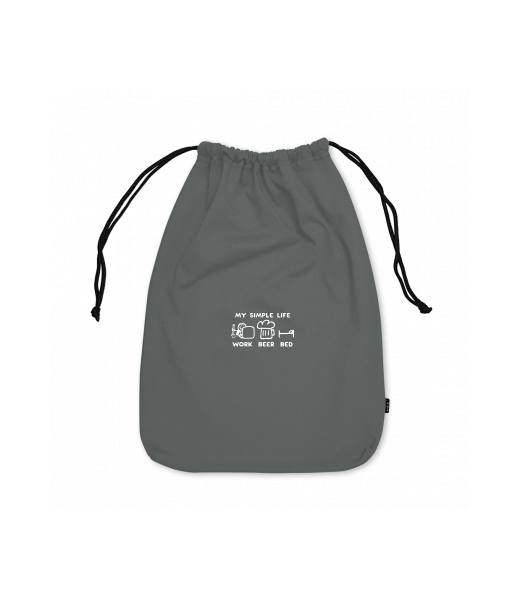 Large cotton pouch with design 1211 MY SIMPLE LIFE WORK BEER BED in color DARK GRAY