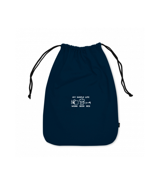 Large cotton pouch with design 1211 MY SIMPLE LIFE WORK BEER BED in color DARK NAVY