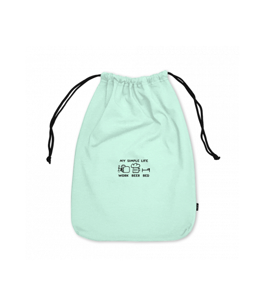 Large cotton pouch with design 1211 MY SIMPLE LIFE WORK BEER BED in color MINT