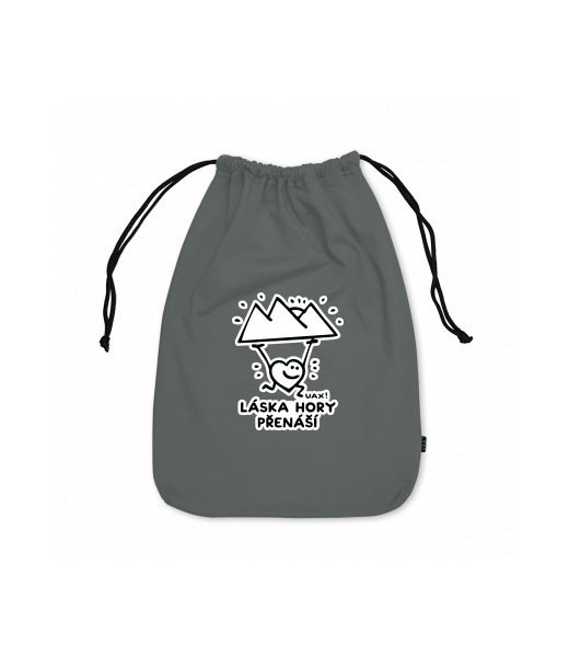 We make sustainable UAX clothing! - hand sewn in the Czech Republic uaxAccessories uaxAll productsBags and sacksLARGE COTTON POUCHdesign 1264 - LÁSKA HORY PŘENÁŠÍDARK GRAY