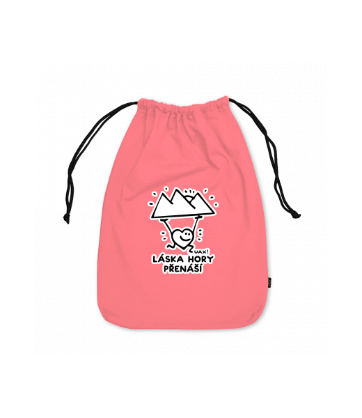 Large cotton pouch with design 1264 LÁSKA HORY PŘENÁŠÍ in color LOSOSOVA
