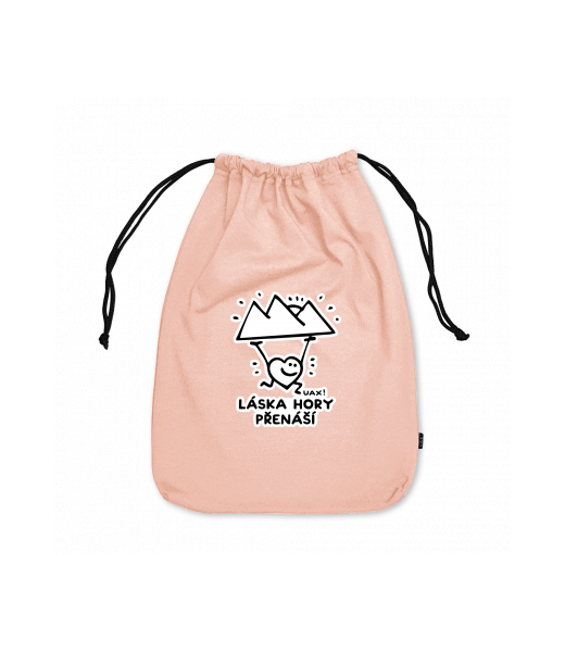 Large cotton pouch with design 1264 LÁSKA HORY PŘENÁŠÍ in color PEACH