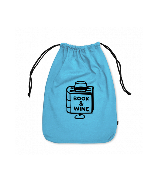Large cotton pouch with design 1322 BOOK AND WINE in color BLUE ATOLL