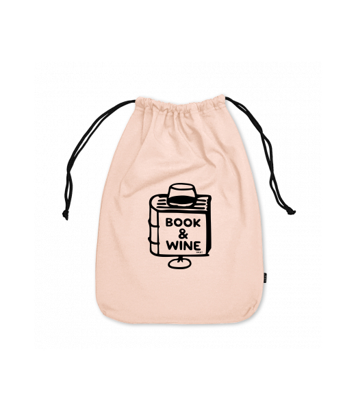 Large cotton pouch with design 1322 BOOK AND WINE in color CAPPUCINO