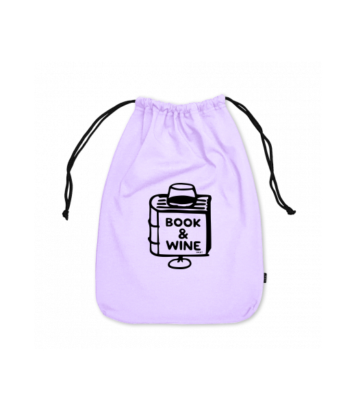 Large cotton pouch with design 1322 BOOK AND WINE in color LAVENDER