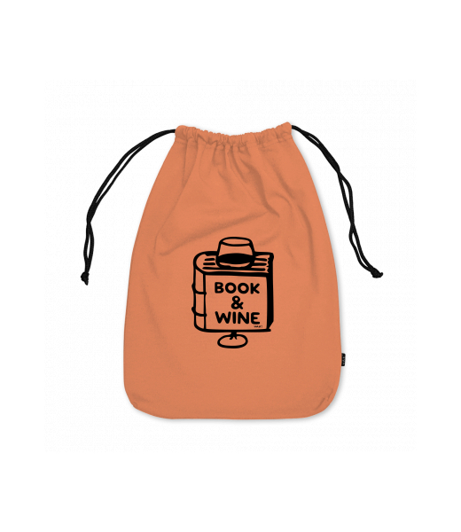 Large cotton pouch with design 1322 BOOK AND WINE in color MANDARIAN ORANGE