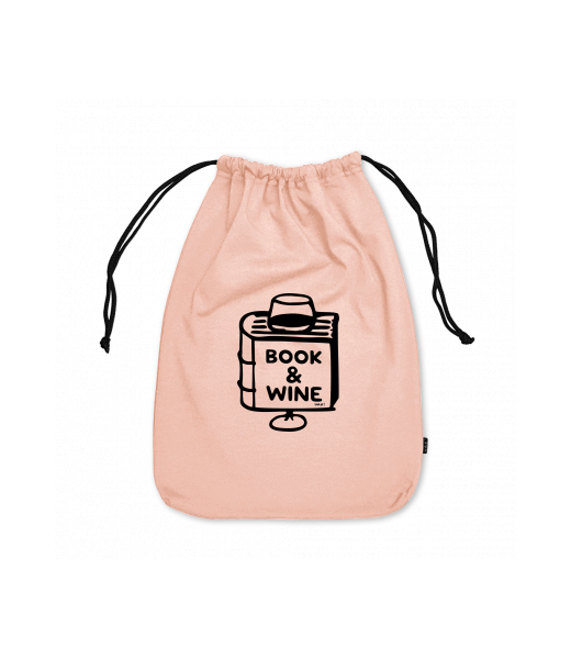 Large cotton pouch with design 1322 BOOK AND WINE in color PEACH