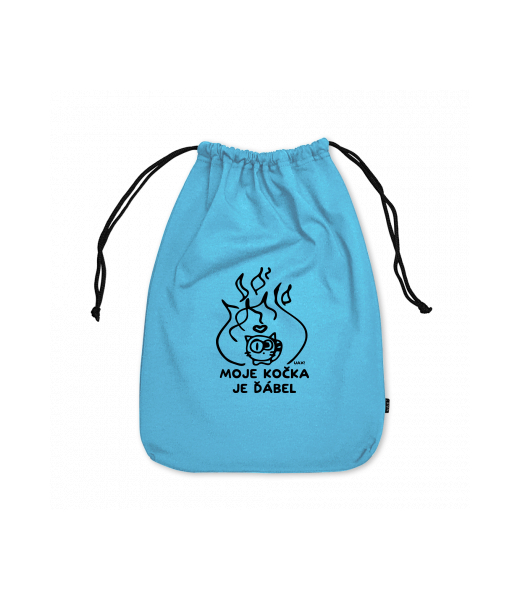 Large cotton pouch with design 1326 MOJE KOČKA JE ĎÁBEL in color BLUE ATOLL