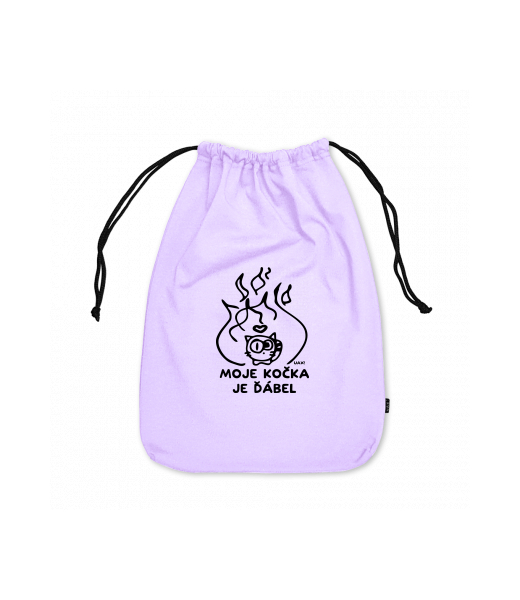 Large cotton pouch with design 1326 MOJE KOČKA JE ĎÁBEL in color LAVENDER