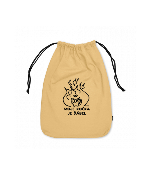 Large cotton pouch with design 1326 MOJE KOČKA JE ĎÁBEL in color MUSTARD
