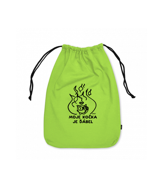 Large cotton pouch with design 1326 MOJE KOČKA JE ĎÁBEL in color PARROT GREEN
