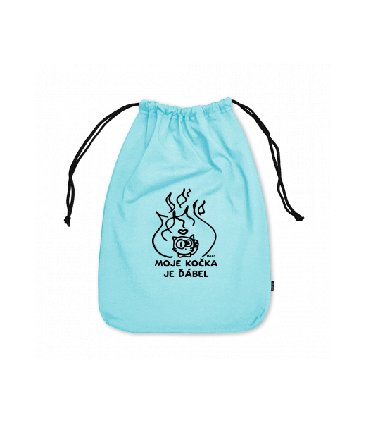 Large cotton pouch with design 1326 MOJE KOČKA JE ĎÁBEL in color PASTEL BLUE