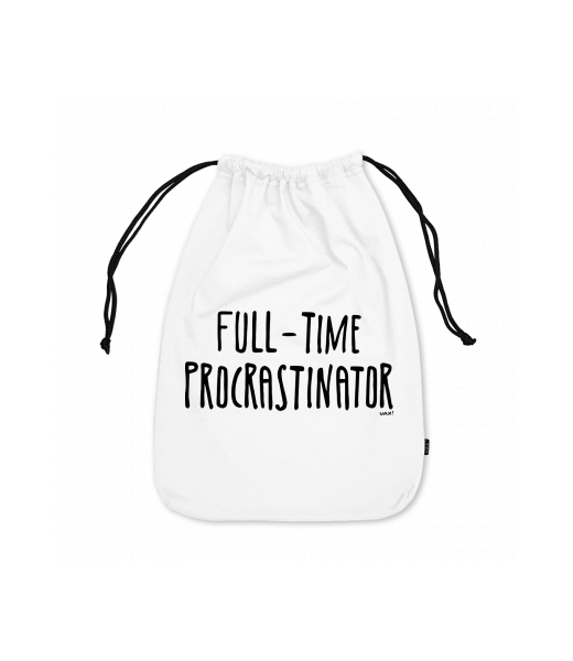 Large cotton pouch with design 1334 FULL-TIME PROCRASTINATOR in color WHITE