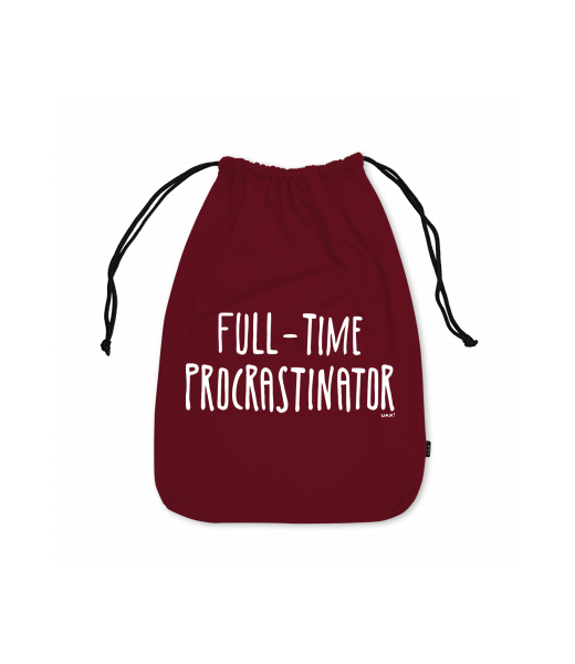 Large cotton pouch with design 1334 FULL-TIME PROCRASTINATOR in color DARK RED