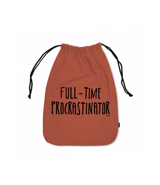 Large cotton pouch with design 1334 FULL-TIME PROCRASTINATOR in color TERRA