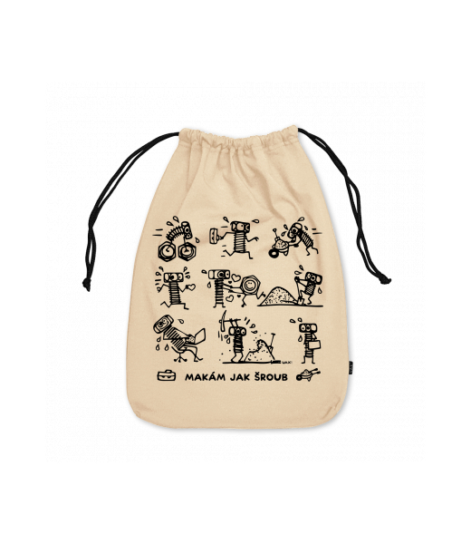 Large cotton pouch with design 1343 MAKÁM JAK ŠROUB 2 in color CARAMEL