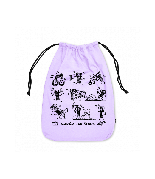 Large cotton pouch with design 1343 MAKÁM JAK ŠROUB 2 in color LAVENDER