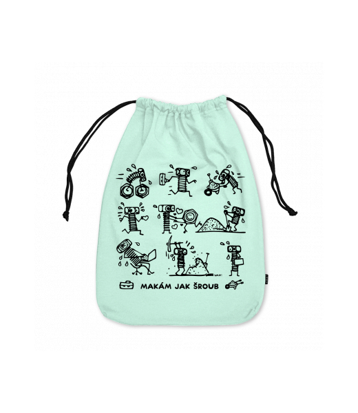 Large cotton pouch with design 1343 MAKÁM JAK ŠROUB 2 in color MINT
