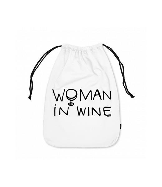 Large cotton pouch with design 1346 WOMAN IN WINE 1 in color WHITE