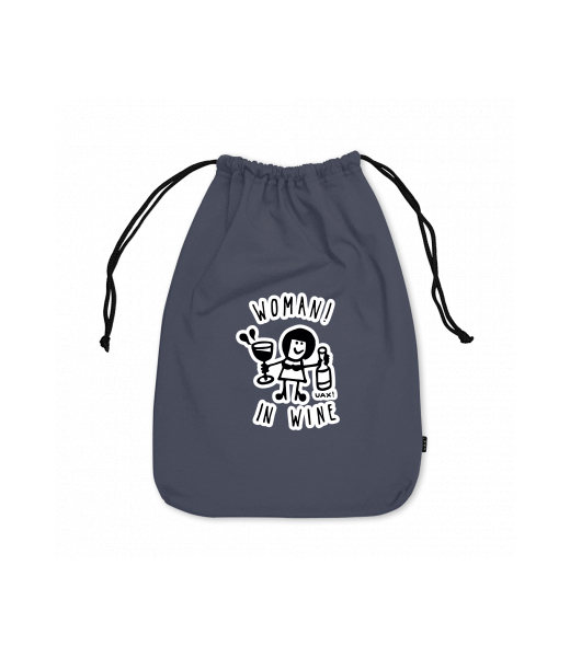 Large cotton pouch with design 1347 WOMAN IN WINE 2 in color GRAY INK
