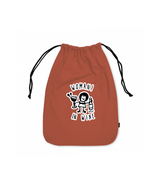 Large cotton pouch with design 1347 WOMAN IN WINE 2 in color TERRA