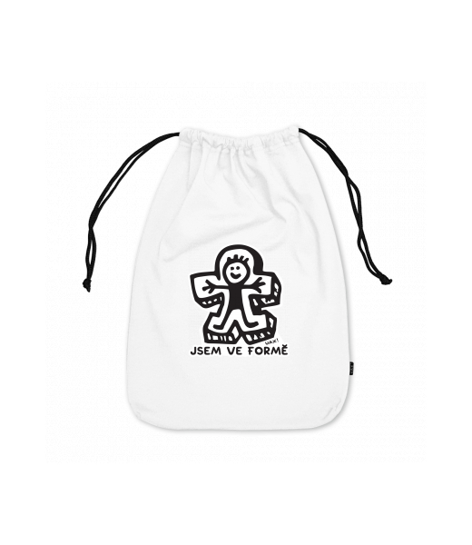 Large cotton pouch with design 1351 JSEM VE FORMĚ in color WHITE