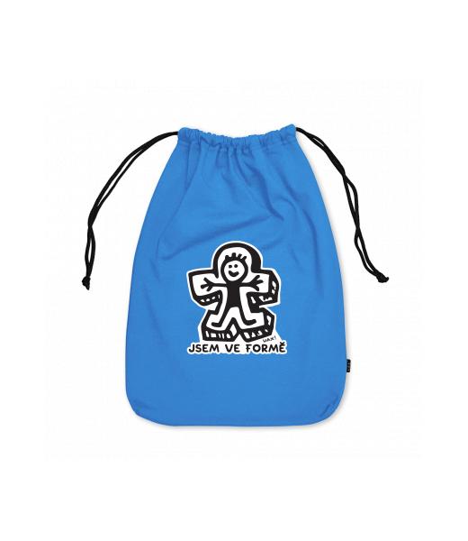 Large cotton pouch with design 1351 JSEM VE FORMĚ in color CAPRI BLUE