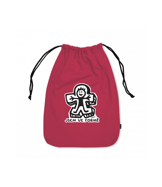 Large cotton pouch with design 1351 JSEM VE FORMĚ in color CHILLY PEPPER RED