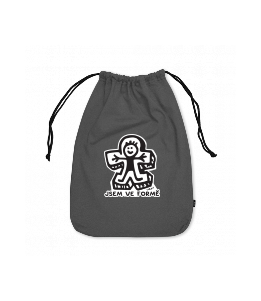 Large cotton pouch with design 1351 JSEM VE FORMĚ in color GRAFIT