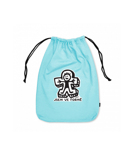 Large cotton pouch with design 1351 JSEM VE FORMĚ in color PASTEL BLUE