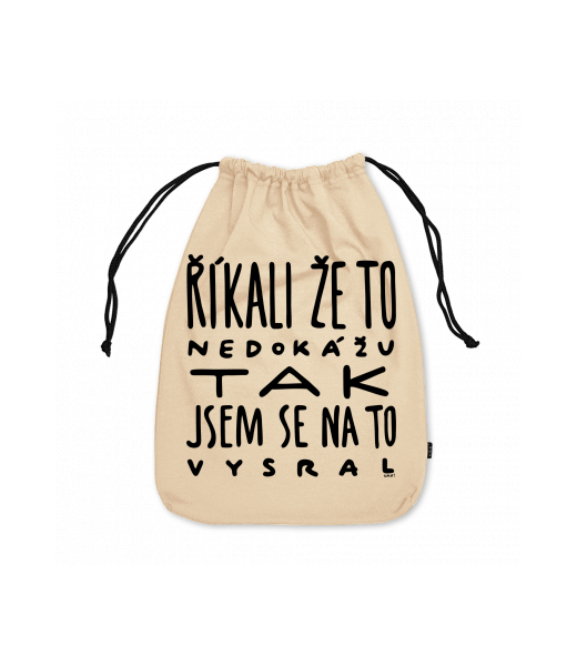Large cotton pouch with design 1366 ŘÍKALI ŽE TO NEDOKÁŽU TAK JSEM SE NA TO VYSRAL in color CARAMEL