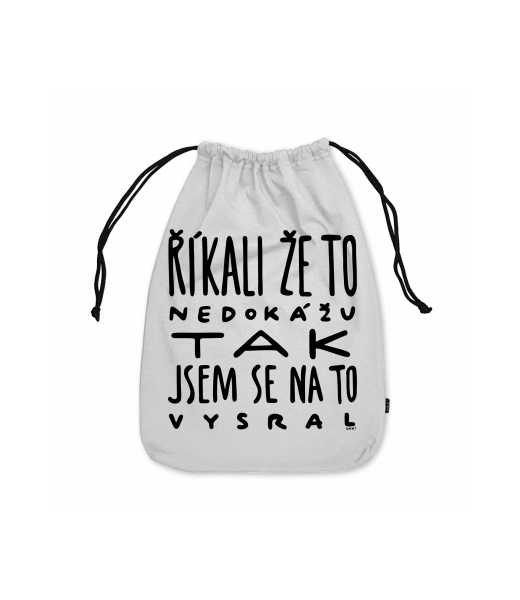Large cotton pouch with design 1366 ŘÍKALI ŽE TO NEDOKÁŽU TAK JSEM SE NA TO VYSRAL in color CEMENT