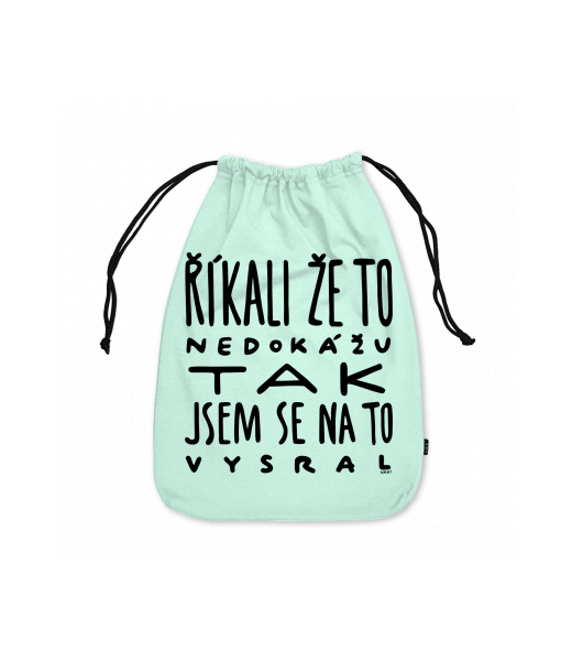 Large cotton pouch with design 1366 ŘÍKALI ŽE TO NEDOKÁŽU TAK JSEM SE NA TO VYSRAL in color MINT