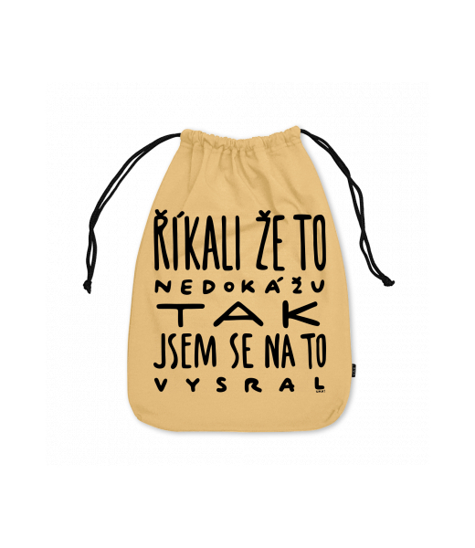 Large cotton pouch with design 1366 ŘÍKALI ŽE TO NEDOKÁŽU TAK JSEM SE NA TO VYSRAL in color MUSTARD