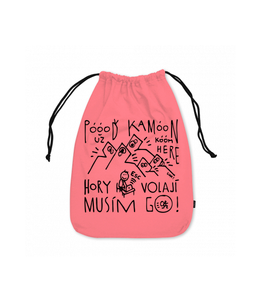 Large cotton pouch with design 1368 POOOĎ KAMOON HORY MUSÍM JÍT GO in color LOSOSOVA