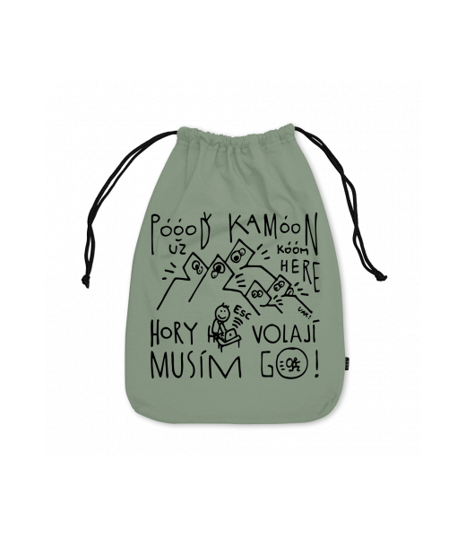 Large cotton pouch with design 1368 POOOĎ KAMOON HORY MUSÍM JÍT GO in color OLIVA