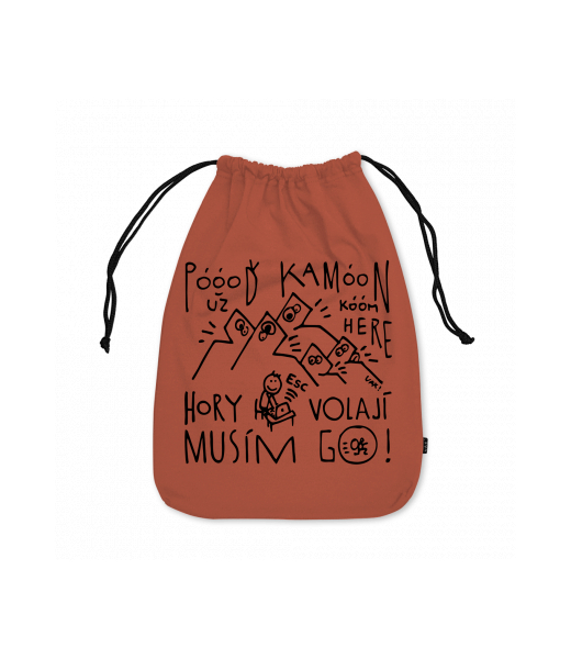 Large cotton pouch with design 1368 POOOĎ KAMOON HORY MUSÍM JÍT GO in color TERRA
