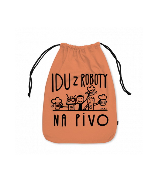Large cotton pouch with design 1369 IDU Z ROBOTY NA PIVO in color MANDARIAN ORANGE