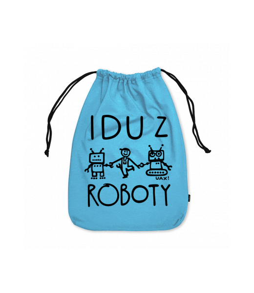 Large cotton pouch with design 1377 IDU Z ROBOTY 2 in color BLUE ATOLL
