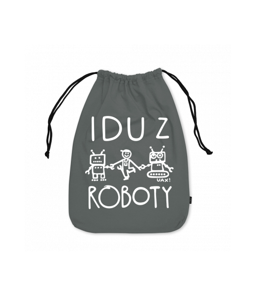 Large cotton pouch with design 1377 IDU Z ROBOTY 2 in color DARK GRAY