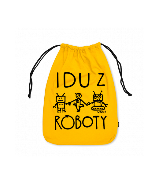 Large cotton pouch with design 1377 IDU Z ROBOTY 2 in color GOLDEN CREAM