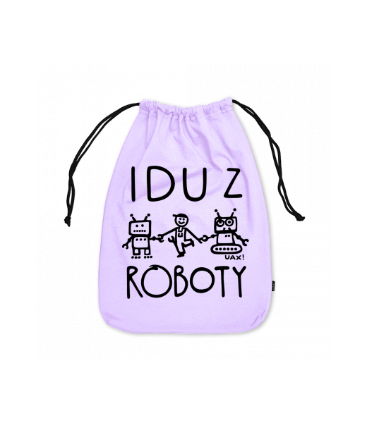 Large cotton pouch with design 1377 IDU Z ROBOTY 2 in color LAVENDER
