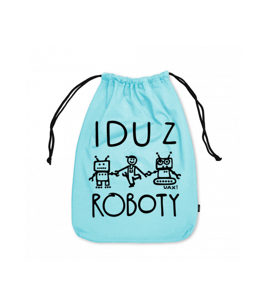 Large cotton pouch with design 1377 IDU Z ROBOTY 2 in color PASTEL BLUE